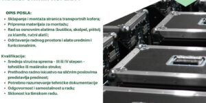 ompanija System Design doo iz Novog Sada se već duži niz godina uspešno bavi proizvodnjom profesionalnih transportnih kofera. Zbog povećanog obima posla, tražimo odgovornog i preciznog operatera za sklapanje stranica transportnih kofera .Ako imate tehničko znanje i želju za radom u dinamičnom okruženju, pozivamo vas da se pridružite našem timu. Opis posla: Sklapanje i montaža stranica transportnih kofera; Priprema materijala za montažu; Rad sa osnovnim alatima (bušilica, skalpel, pištolj za klamfe, ručni alati); Održavanje radnog prostora i alata urednim i funkcionalnim. Kvalifikacije: Srednja stručna sprema – III ili IV stepen – tehničke ili mašinske … Nastavi čitati Operatera za sklapanje stranica transportnih kofera